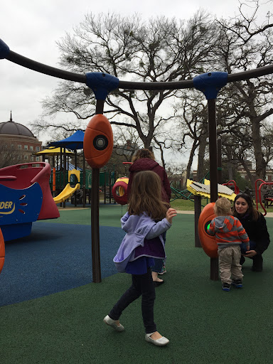 Read moreThis is an incredible park! It is very accessible for children with disabilities. I see kids with various mobility issues playing here all the time. It is safe and always clean. They have restrooms and water fountains (tip: you have to hold the button for a few seconds before the water starts to flow). There is a lot for toddlers and big kids. I like the musical instruments -- always a hit! I'm also grateful for the trees and the fountain that give the more adult park feeling. This is a great park...