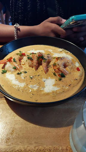We went to Kitchen + Kocktails.We had a 2pm reservation to only wait 39 mins in a line, with no waiting area. Once at the table we were served water in the tiniest glasses. Ordered a appetizer, deviled eggs. They lacked any type of flavor. The shirmp served on top of the eggs lacked flavor as well. However they did have music playing and the DJ was great! I ordered a drink the Peach D'usse Frose. It was really good. That's where anything delicious started and ended. The food was NOT good. I ordered the catfish which is served a la carte and a side of blackeyes peas. The rest of my party ordered shrimp and grits, and pork chops. They did not finish their overpriced, tasteless food. Overall if you are looking for a vibe and some good drinks then give Kitchen + Kocktails a try. If you're hungry stop...