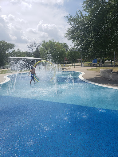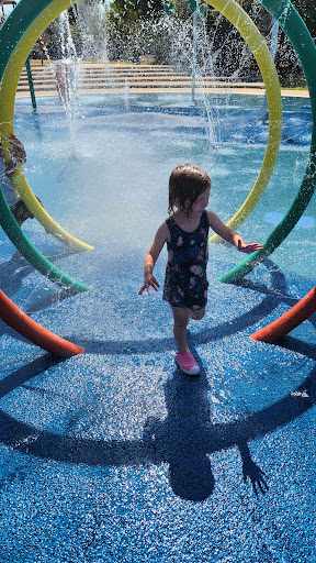 We really love this park, especially the sprayground in the summer. I do wish the ground in the dry park area was not those wood chips and had shade cover so kids could go back and forth between parks. The slides get too hot and burn bottoms in swimsuits and you can't go barefoot on the mulch. Also, some sort of bathroom or changing facility could be nice too. Just some observations from me and the other parents at the park. It's a great neighborhood park and we get to see the dinosaurs there and back...