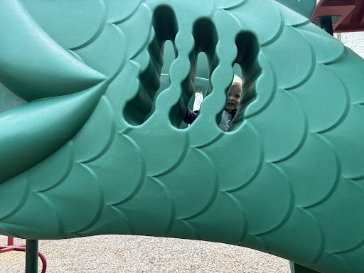 It's pretty basic compared to some other parks I've been in in large cities. But there's a nice wood chip covered play ground for kids that includes swings, slides, poles to slide down, etc. There is plenty of space to run and play sports. There is also a gazebo that is used for music presentations and other things. There are picnic tables next to the gazebo that people frequently use for birthday parties or to sit and read. There is also a picnic table next to the Creeper Trail between the walking bridge that crosses Holston River and the caboose. One part that is not easily seen and almost never used is a small picnic area next to the Veterans Memorial that's across the street from the library. To get there, you have to walk through the Veterans Memorial, toward the park. The picnic area is in a lower wooded part between the park's walking trail and the river. I actually just recently discovered it as I was walking around the Veterans Memorial. The picnic tables are older. You may want to bring table cloths...