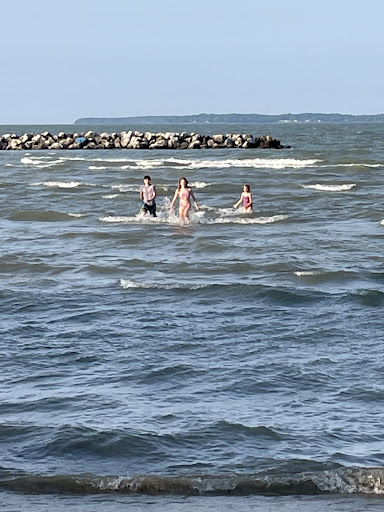 This is a great beach to bring your family. It has 4 breaker walls made of stones to keep the sand in place and prevent big waves. This also allows the water to go down super duper gradually. You can walk out to most of the breaker walls. Because of that, I would say it's one of the safer places to bring younger kids on Lake Erie. Some review said there were life guards. There are not anymore. They haven't been there in years. So you do need to watch your kids/ friends closely.