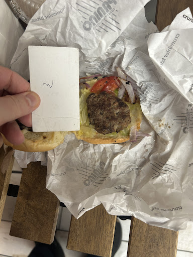 While the gentleman who served us was friendly . I have never paid 27 dollars for a cheeseburger and French fries lol not even from a steakhouse . We were searching for a boom , big bust . I was initially shorted in change by the clerk who was confused as to how 27 I spent and 8 he gave me didnโt add up to the two twenties I gave him โฆ after we sat in the dining area reading previous reviews I feared sharing the experiences of โsmaller than a business card โ size burger patties amongst other issuesโฆ sadly I was proven correct. The bread was the most enjoyable part of the burger . The High pitched whining from the appliances definitely doesnโt make it comfortable inside . The only thing separating customers from the kitchen is a cardboard partition . Do not spend your money here . Just go to dominoes next door like the guy behind the counter said . 10% service charge for no service . You make it hard for people to trust your communities if this is the way you do business . You donโt remotely resemble a place that can sell a sandwich and fries for 10 bucks let alone...