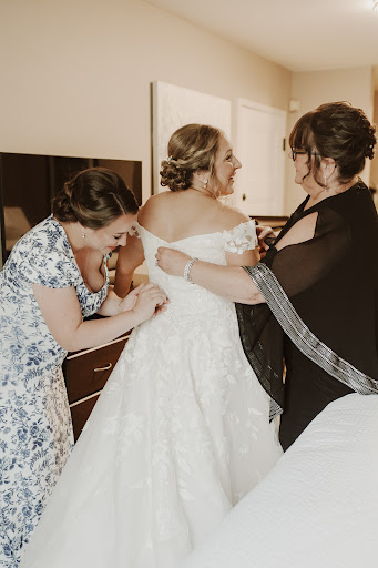 A year later, I got engaged! Bella Sera was the first (and ended up being only!) dress appointment I had. Making the appointment online ahead of time was a breeze, and I was able to request Anthony (which they also called me to confirm!) The day of shopping, my mom, maid of honor, and I all went in with ideas on what dress Iād end up in. I was convinced Iād be in an a line, vneck dress. After the first one I put on, it was a clear no (confirmed by Anthony- ha!) I tried on 8 dresses in total that day, with a clear winner. Anthony helped recommend styles complimentary to my body type that I would have never even considered. It was such a pleasant experience. When I tried on the dress I ended up in- I loved everything about it- except the back was sheer and therefore I couldnāt wear a bra with it. Anthony quickly solved this issue by checking with the designer who could fill it in with fabric matching the rest of the dress. He got a piece of a dress to imitate what that would look like for me so we could get an idea. It was perfect! The staff let my mom bringing mimosas and we had a whole little morning out of it. It was lovely. Another associate at the store asked when my wedding was, when I shared September, he pointed out that the dress I was wearing looked like falling leaves down the back- that was it! The only thing keeping me from wanting to buy it that day was this idea in the back of my head that Iād wear my momās wedding dress. The seamstress right at Bella Sera told me to bring momās dress in the next day and she could show me what they could do with it. So home we went.