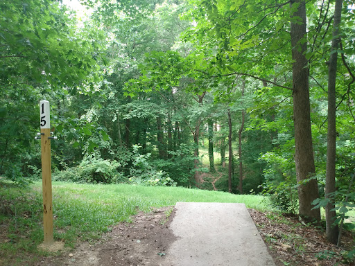 Read moreThere are two disc golf courses there: a short 9 hole at the front of the park and, an 18 hole with 2 tees. It starts across from the ball field. From West Main Street entrance follow straight, 9 hole #1 tee is on the right, keep going down the hill past shelter #3, around past the left turn to the playground and hole #1 is on the left at the kiosk. It's a beautiful park in the city. Storms have been rough on it this year. We play...