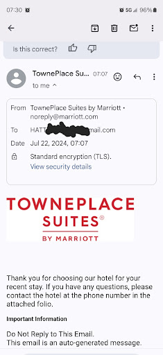 Read moreJuly 21st got up for breakfast and was there at 0615. There was no nozzles on the juice. I asked Melba (front desk) she gave the excuse that 3rd shift is unable to put them on AND 1st shift hadn't arrive yet. Then the waffle noozle wasn't working, same excuse. I was disappointed but had cereal and went to work. July 22nd, again no juice because of the nozzles, again just ate cereal. July 22nd, went to check out and ask for a receipt, Melba informed me she couldn't give me one, I said what about an email, to which she then says we cannot do anything be cause of the "bluescreen issue". OK Melba, what about a handwritten receipt? NOPE. I said I cannot leave here without something to say I was here, it's for my expenses related to work, let me speak to the GM. She tells me she is busy! To which I say I'm not leaving without something. Melba then scoots her chair to the open office door and says 101 wants a receipt (twice). Whatever is said to her makes her scoot back to the computer and generate a document that I've been here. I leave and 7 minutes later AN EMAIL SHOWS UP WITH MY RECEIPT! An email YOU said could NOT generate! I've included the picture of it to show it was generated. Last time I stayed here I never dealt with Melba. 2022. Next time I will go to the Hampon Inn. Melba, I get it, you have something going on, but it doesn't hurt you to be more civil and less argumentative. I started out stating why I needed what I needed, once you decided you couldn't even make a HANDWRITTEN note then your same energy came back o you. May you have the day you...