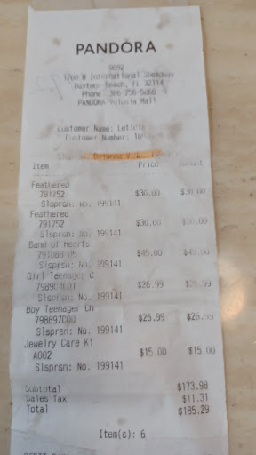Ā Ā Ā Read moreI just had to say what a wonderful shopping experience my husband & I had at the Pandora store in the Volusia Mall in Daytona Beach. After having been in a few of the other jewelry stores & not feeling impressed with anything we saw, we came into Pandora & felt wowed by all their younger, more current, & much more personal choices in jewelry. We were so happy to have Keisha Q helping us & showing us all sorts of options & ideas with different types of jewelry. Pandora is lucky to have Keisha working there. She is not only personable & loving her job, she showed us so many things & helped us make the perfect selection. We are so happy with our purchase- a Sparkling PANDORA Floating Heart Locket necklace & 3 Petite locket charms that really personalize our gift. We know that we will be back to add more charms in the future. Thanks Pandora & Thanks Keisha Q for helping us make our...