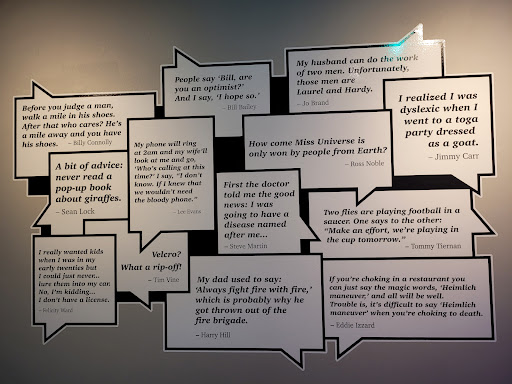 The photographer was great, and it was amazing to see how many different famous comedians they had photographed. Some of their work included Bo Burnham, Rowan Atkinson, and Noel Felding. They also photographed props from Charlie Chaplin and Robin Williams. I particularly enjoyed reading about the photographer's remarks about some of the comedians.