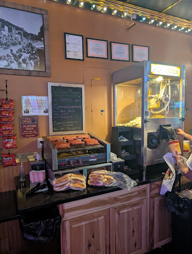 Okay, this place is a must stop if you are in the area. It's pretty small inside but an absolute blast once you get in. If you sit at a slot machine and start gambling you get free beer, free hotdogs, free popcorn, and free bags of chips. Now I know these items cost me in the long run but it is so much fun and you get a chance to win some money. While we were there a guy hit a $1600 jackpot! If in Deadwood stop by and test your luck!
