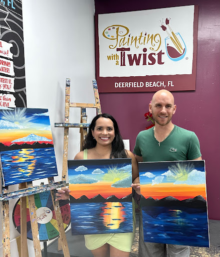 I can’t begin to say how phenomenal this location of Painting with a Twist in Deerfield Beach is! First and foremost I have to give a huge shout out and thank you to the amazing owner, Holly who has been such a joy to speak with and book classes with. The ownership, staff and whole team here are fantastic and truly so make sure they provide the best experience they can to us. Thank you Holly! :) We have been here 3 times so far and can’t wait for the next. The accommodations that were made for my partner and I to be able to celebrate a very special day much later due to traveling was so thoughtful and truly awesome. We have taken a group of 12 (non-painters) there and gone separately and each time was fantastic. Can’t wait to be back for another class soon. If you haven’t checked this place out, it is a must! And if you have a special event or just sharing a date night with your loved one or friend, Holly or any of the team are amazing to speak with and will make sure you are taken care of and have the best experience! Kuddos to the leadership at this location for making sure each customer leaves with a smile and a memorable story and cheers to many more painting adventures to come! Book your class today, you won’t be disappointed and go have a blast! Thank you Painting with a Twist:...