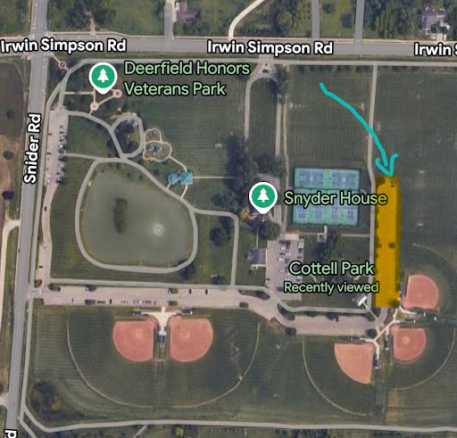 Nice park, but maddening parking design for this being in Mason. Check out the yellow area. Notice there is no place to turn around if parking is full (which you wouldn’t know anyway til you get to the end).