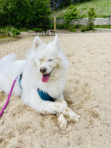 Nice little beach. The same as all the waukesha beaches, they are very strict. There are mandatory breaks every few hours for 20 minutes. No floaties allowed, and I'm pretty sure every few minutes a lifeguard has to use a bullhorn to correct a child who either is piggybacking or tosses a rock. That takes me to my next point- the rocks. Ouch. It us a fully covered rock bottom lake. It is very uncomfortable as you walk out to the deeper end, which at its deepest is around 3.5 feet. No real deep end. There is a very nice shower area with private showers, which you will really appreciate as you try to get all the seaweed and lake muck out of your nether regions. Yes, seaweed. But its only about 6 inches long from being trimmed by passing motor boats speeding by, and splashes into the swimming area pretty consistantly. The beach and picnic area are nice with some shady spots. The play area is nice. The parking situation is horrendous if you are in a car. You must park in the car parking lot and take a long walk through buggy woods downhill to get there. There is plenty of boat trailer parking right next to the beach for boat launching though. At the end of the day, you then, lucky swimmer, get to drag wet towels, a cooler, exhausted kids and whatever else back through the buggy woods, uphill to the parking lot. There is also no cafe here, unlike the other swimming holes. It's nice enough, and the price is right. I'm really struggling with the right rating. The parking and lack of deeper water area, plus sharp rocks make it hard...