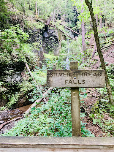 Silverthread Falls is a smaller waterfall within the Delaware Water Gap region in Pennsylvania. The waterfall shares a trail with another popular waterfall, Dingmans Falls. Silverthread Falls is the waterfall to be seen from the trails. It is relatively smaller than some of the waterfalls in Delaware Water Gap Region, but still definitely worth the trip! The boardwalk is well-maintained and makes the walk/hike to the falls...