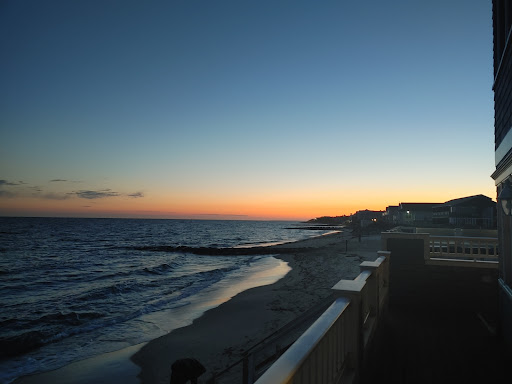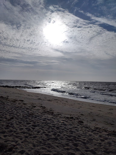 It's a nice "private" beach that all the resorts along the area use. The beach is very clean with plenty of sand to play, fly a kite, or sit and watch the birds (sea gulls, ducks, & varieties of meadow birds), or wait patiently to spy seals gracefully gliding up and down in the water. At times they'll stop and look at you, as well. In the warmer months, you'll want to watch for sharks (we've been told by locals - where there are seals there are sharks.) There aren't any signs on this stretch of beach (there are many warnings on the public beaches.) This beach has a lot of small shells, piles of them and small crab shell that the sea gulls have eaten. My husband was lucky enough to assist a larger horse shoe crab from death, to the chagrin of a hungry bird. Enjoy this little beach... walk it's shore line and enjoy the blessings of this tiny...