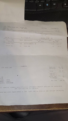 Read moreI have a breathalyzer thru Intoxilox that I was directed by then to get installed and calibrated thru car toys Denton tx. ( I did know I had other options ) Nor did I think a company employeed and certified for these installations and calibrations would not train their employeees properly. This story would be way too long from the beginning but I’ll start when they removed the unit from one vehicle to another. It took about 5 hours. When I went to start the car to leave the parking lot of car toys it would not start. And employee jumped it off and took it to the back again. A while later an employee cane out and told me my battery was too low and would not hold the charge of the unit constantly staying on... keep in mind this is a 2011 Buick Enclave I had purchased used but with the dealership inspection passed with everything about 4 weeks previous to the switch... so until I got to an oreilys I had to get the car jumped off everytime I shut it off. I mean does the unit use THAT much battery power? Is what I thought. But I have two children and in the middle of Texas summer I could not keep up with that rediculous sharade so I spent 125 on a brand new battery that same day. After the install of the new battery that the employee at oreilys installed. The car would not start still. He checked the voltage of both batteries. The new one was obviously great any the old one was at the quarter line of the read out. He told me in now way would the car die that fast even if I had left the old battery in the vehicle. But I kept the new battery anyways as it was already bought and paid for and just to be sure. However the problem of my car not starting everytime the ignition turned off was still an issue. I called back up to car toys. They then told me “well it could be a faulty unit then and we will have a new one over nighter for you”. Ok . No choice. When I brought my car up to have the new unit installed. Low and behold the car started, 4 hours later again. I went to leave the parking lot and my driver side blinkers (both front and back) and my driver side only air vents had not only stopped blowing cold with the ac ( probably 108 degrees outside without the heat index ). But it was now blowing hot air. Very hot air. I did not go far. I did a u turn actually and pulled right back in to tell them the issues. They once again pulled it around to the back. Another hour and a half, 3 men looking online and on their phone for trouble shooting (the back bay has clear glass window so you watch them.). An employee came to me and said they do not know what is wrong with my vehicle but it certainly has nothing to do with the install they just did and actually my vehicle has this problem a lot as they googled it and I would need to take it to the dealership. My jaw almost dropped to the floor. Litteraly my car was 100 percent in working condition before they installed and uninstalled and installed again. Oh and by the way they told me they did not do an inspection of my vehicle so there is no way to know if it was having these issues before I brought it back in for the new unit... a day later. I’ve necer been so irritated in my life! The only constellation they offered was for me to bring my car back again the NEXT day and they would look at it some more because it was close to closing at this point. As my car is under warranty unless the wires are screwed with I am NOT paying for the dealership fees. Ive just toughened thru the heat as long as my children and passenger are comfortable in the back and passenger side where the ac actually works. And when I’m able to take the unit out, then I will take it to the dealership. But I don’t feel like some of the employees at this location are qualified to work a toaster. Much less be messing with wires on a vehicle. And they should have done an inspection of the car before they spend 5-9 hours...
