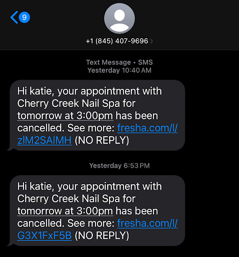 NEW CLIENTS BEWARE!!! My 2 friends and I were gifted āa girls day outā from our husbands.we planned this about a month out, made sushi reservations, overall we were really looking forward to this. I called on Tuesday 1/28, just before 5pm to make an appointment for 3 basic pedicures for this upcoming Saturday. They offered me a 3pm time slot and asked me to confirm my appointment after getting off the phone. I confirmed and entered in my credit card info immediately after. On Friday 1/31, I received a phone call at 1038am from the salon. I work 10hr shifts in a busy hair salon, so I stepped away from my client to answer this call. The woman told me there was some confusion upon booking and asked me to confirm our 3 pedicures with gel polish again. She asked me to confirm via text yet again, where I told her I did not have time at the moment to enter my credit info, as I was now running late with my current client and had 3 more back to back. She asked me to please confirm and enter my credit card by 3pm. I told her I would sometime by then, whenever I got a moment. Immediately after our phone call, I received a text at 1040am that my appointment was canceled. I did not see this text until 121pm, when I got a moment to check my phone. I was planning to enter my credit card then, but instead had to call again to ask what happened and if we still had our appointments. No one answered the phone at this time and I had to leave a voicemail. I had to go back to work, where I was double booked and would not get another break until 7pm when I finished. At 249pm, I received another text from a different number asking me to confirm my appointment. I missed this text because of my job. At 653pm, as I was completing my last haircut I see on my Apple Watch that my appointment is canceled again. At this point I was so upset, because I was seriously looking forward to this after such a busy work week. I called again at 7:02pm and left a long detailed voicemail. I then went to their online booking and tried to book 3 pedicures and it said they were fully booked. I then added to their wait list and left a very long detailed message in the notes.