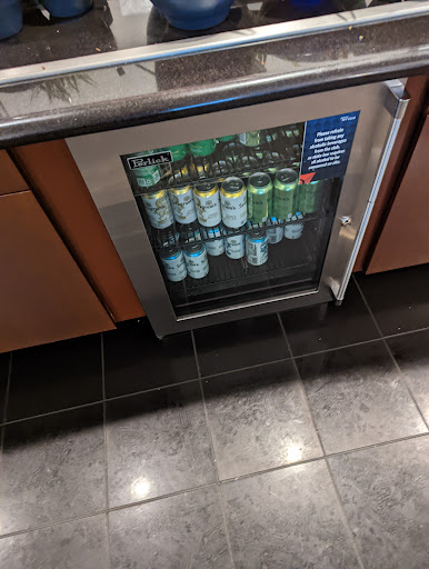 I arrived around 10pm and it was nice to see the later open hours as my flight was delayed. Same-same most everywhere else and as others provide: self-serve food and booze, which for us heavy pourers is nice to have the option. Even at 10:00 sandwiches were available, mac and cheese (I think), and various other assortments akin to charcuterie were also available.