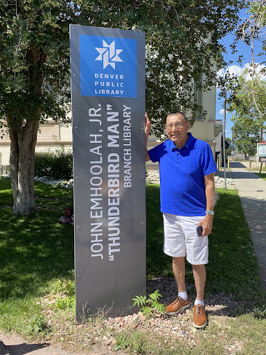 The branch was renamed for John "Thunderbird Man" Emhoolah, Jr. on October 21, 2021 after considerable community discussion. Mr. Emhoolah was a Kiowa activist also with Arapaho roots and a descendent of survivors of the Sand Creek Massacre. He served in the Korean War and as an engineer at Boeing, but is noted for a 50-year career in Native American studies and education, in Seattle and Denver. He was also a tribal administrator and a prominent community leader, in Denver...