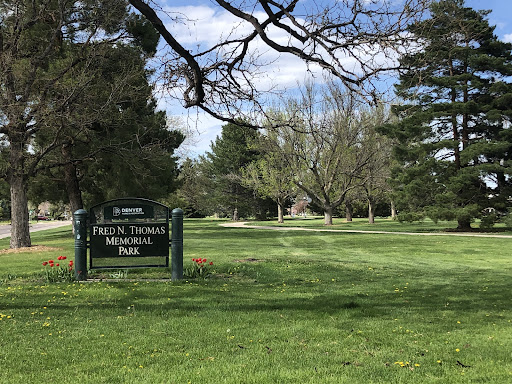 A nice park surrounded by just thoroughfares you would not think it has so much space, a very fetching double softball field, stands, a large dugout area, umpire central office and score tower of sorts, restrooms and an even an area well suited for concessions. There is also a nice kids playground, a large separate open space(adjacent to field), two mod sized covered areas for picnicing and a paved pathway that circles the entire or half the park. I guess its a little over a mile to go round. The park also comes with two parking areas one main and one south by the picnic aeea. Ahh and last but not least, this park has a good, healthy variety of assorted, well kept, large to larger well matured trees. Its a nook unlike many other areas on Stapleton where most trees are still middle...