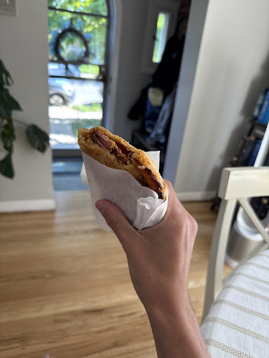 No but for real, this place was amazing. I got a bacon and egg hand pie that was perfect. The crust was buttery and flaky, not dry like some hand pies get. Inside, it was almost like they finely chopped everything so you got a perfect bite EVERY BITE.