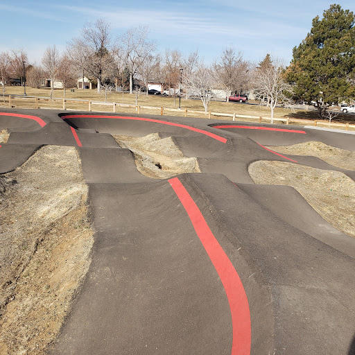 On opening day 9/21/2022, would have given it a 5 Star rating except for the fact that Denver Park and Recreation (DPR) has some unfinished business here both in physical and management of the pump track!!!.... First, DPR executives incorrectly regards the Montbello pump track as a "bike only" pump track. Truth is, it is an asphalt built pump track by Vellosolutions as a bike feature but it is designed/built for BOTH skateboarding and bikes. Reality is more people will skateboard the Montbello pump track because more people have the proper skateboards for a pump track than they have the proper bikes to ride a pump track, especially in an urban setting where bike ownership lacks in general Metro-Denver wide. Also, the pump track is right next to Montbello High School and is frequently used by students before school, during lunch, and after school primarily on skateboards.... When the word gets out about how good Montbello pump track is, skateboarders from all over Denver and beyond will be flocking to the Montbello pump track since it is a real pump track; unlike the unusable and unsafe bunk "bike- scoot tracks" waste-of-taxpayer-money that need to be jack-hammered and redone at Bible Park and City Park in Denver.... AS FOR UNFINISHED WORK AT MONTBELLO PUMP TRACK: 1) Put a trash can and recycle can or two next to the pump track to keep bottle caps and whatever out from in the pump track that will cause accidents. 2) Remove all the small rocks haphazardly placed in the low dirt spots that will eventually get kicked into the pump track causing bike and skateboard accidents. 3) Put up some cool signage on: what a pump track is; the etiquette of use/taking turns/heads up; the recommendations for safety equipment; advise to watch out for and remove trash/rocks/dirt; and lastly a contact point for any issues such as spalling/potholes/flooding etc.... Hope to rate the Montbello Pump Track with a 5 next time.... PS, Denver Parks & Recreation Advisory Board (PRAB), this is solely on you to help DPR make sure Montbello Pump Track is a success unlike the great pickleball debacle of 2022 that did...