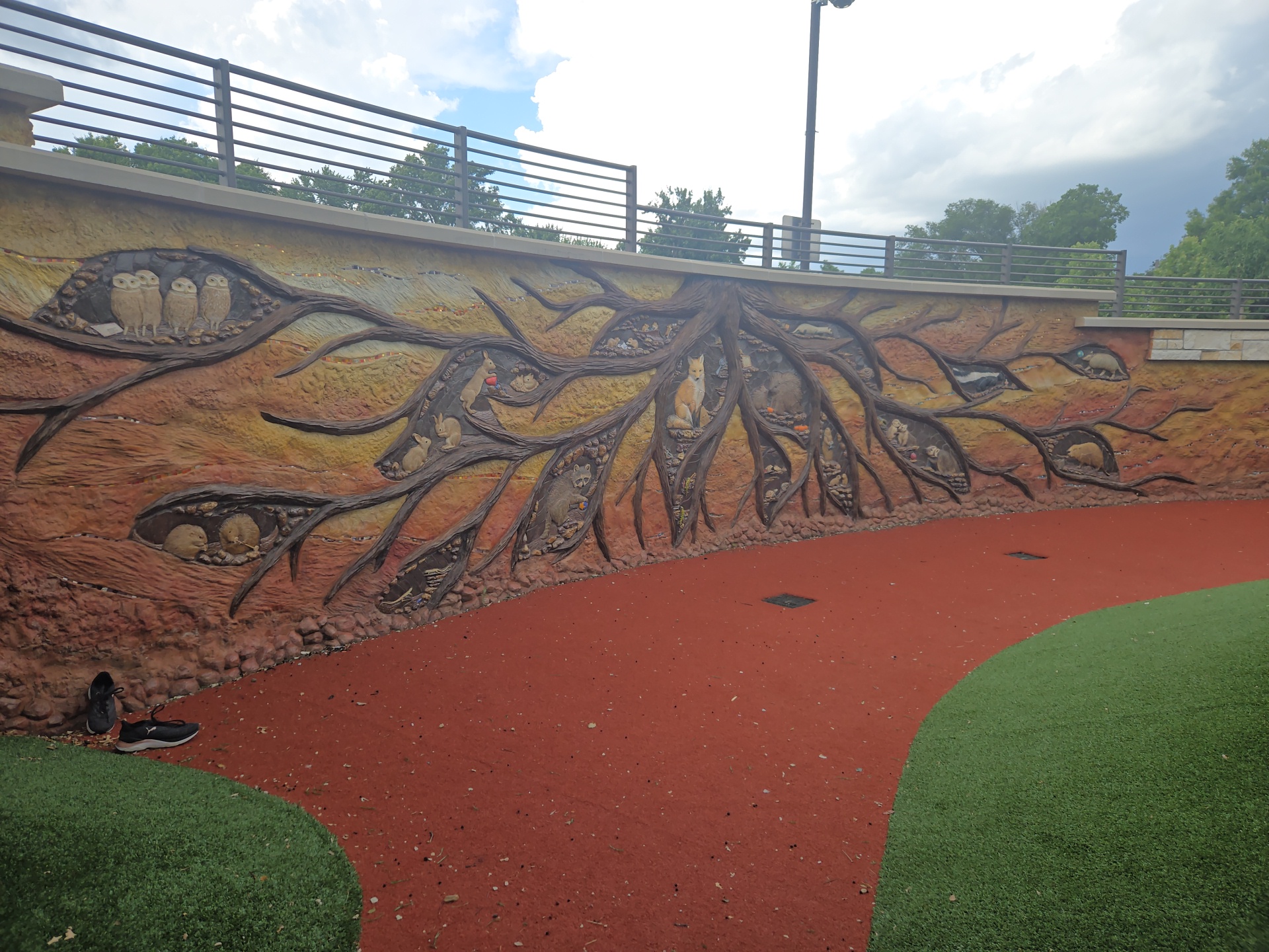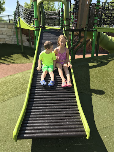Such a fun place to take the kids! The fountains are almost always on, and the kids enjoy being able to run thru the water while also playing at the park. Sometimes, though, there is barely anything coming from the fountains. I think they either turn on the fountains or the waterfall, but not both. The waterfall is tons of fun, too! Be super careful down there, though, because it’s easy for the kids to get hurt. They close their eyes when going under the water, so it’s easy to run into each other or slip from the wet concrete. There needs to be shade down there because the benches get extremely hot. The playground is absolutely amazing! There’s no shortage of interesting things for the kids! It’s almost a maze, and it works for literally any age. Lots of slides, rope walk, climbers, tunnels, and space to run around. There are a few benches around the outside, but it’s comfortable enough to just sit on the turf because it doesn’t get hot. The swings are great because they’re large enough to fit a few kids at once, and they’re different than other parks. It keeps things interesting! The one complaint I have with this place is that there are several openings built into the playground where the younger kids can get away from their parents. At least one leads directly into the main part of the parking lot. It’s a large area with the playground itself sitting lower than the main area, so it can take a while to run to the other side if the child happens to walk out of the playground and continue into the parking lot. It’s also easy to lose sight of the child if they decide to walk along the lower rock wall where the...