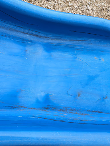 This park has some pretty neat and unique climbing structures and features. They managed to use the small space very effectively. Unfortunately, there are a lot of defective parts - cracks at the bottoms of nearly all the slides, rotting wood, peeling paint, warped and unsteady benches, and exposed rusted metal. If some serious maintenance were done, this would be a very nice little park. Dogs are not permitted. Portapotties...
