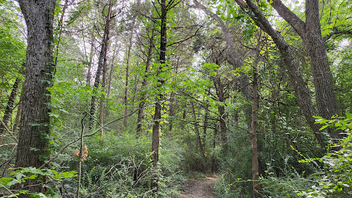 Easy to moderate hiking trails, which also look to be good for mountain biking. Long sections are in full shade or dappled sunlight. A few picnic tables dispersed in case you don't want to rest on the ground. We've brought kids under five; as long as you have a hiking stick to steady yourself on the steep parts, you can hold their hand and everyone will be fine. There's enough cell signal for popular exercise apps to map your distance. On our most recent visit we met the trail steward; nice guy with a sense of humor. If you are tuned in to your surroundings, you might detect a...