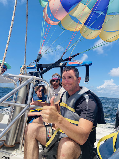 We went back two days later for parasailing. Captain Christian and Brandon took us out. They were both amazing and made us feel very comfortable as soon as we got onboard. Each rider got about 10 minutes of flying time. You choose if you want to get wet or not (they let you down so your feet and lower body touch the water at the end of the flight). If you opt out, you stay dry the entire trip.