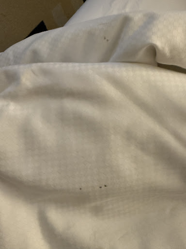 Read moreThis hotel was selected for a business trip in August of 2025. The first room assigned, I put my suitcases in the bathroom and did a check of the bed and found spots and stains on the sheets (not sure of the cause of the stains but the stains looked like bed bug poop (from online research)). There was also food crumbs, eye lashes, and a plastic fork under one of our double beds. While sitting and debating if I should request a cleaning of the room I saw a live bug crawling on the bed. My sister captured the bug in a tissue for proof. I am not sure what type of bug it was as I never personally had bedbugs before so I wanted to show the front desk for them to check. I had done research on bedbugs as I heard of horror stories and take every measurement to avoid getting them. Once we seen the live bug crawling, I called the front desk and told them I need a bed bug check when they bring up fresh bedding we previously requested. The staff then laughed before hanging up the phone. (Excuse me?!?) I walked down, handed them the bug and asked them to identify the bug. The staff said he was not going to look but will let management look at it (it was probably thrown in the trash). I then requested a new room. The staff was apologetic and gave us a $50 credit to our room card. They then moved us to a new floor and room. The new room had more black dotted stains which concerned me. I wanted to leave the hotel but the party I traveled with pressed we should be fine as they didn't see live bugs. I could not sleep at all and stayed up all night to watch out for any bugs. It was a horrible experience to sleep here. The next day after leaving work I came to my room and found it unclean. I called the front desk and they said in order to have my room cleaned I had to request it prior to 4pm. I never heard of any hotel not regularly cleaning their hotels in between stays. As I expressed this they then made an effort to come clean my room after the cut off time and changed my sheets. The new sheets looked New! The cover however did have some black small dots which still gave bed bug activity. The staff became nicer over time as I stayed (3days). I never seen another live bug but I will like to say I feel that All hotels in business should regularly clean their hotel rooms and treat for bed bugs as ppl can bring them or if they have them, cause a huge infestation. I made it back to my home town today and left all my luggage in a hot car out side, and when I bring my clothes in the house, everything will be thrown right in the dryer for at least 40 mins. I also will leave my luggage in the sun for 3 days!!! Beware before you book and God bless all!! Pictures attached of the spots found. (I wish I took a picture of the 1 live bug we found in our...