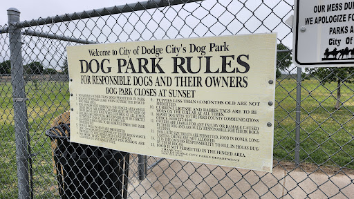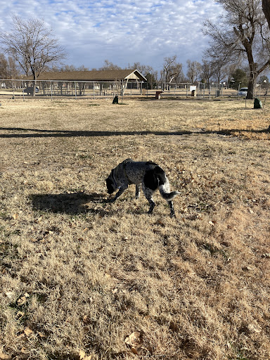 PROs: -Pretty spacious dog park located in Western KS -Properly fenced -Drinking fountain, picnic table, waste bin, and doggy poop bags provide -Rules clearly posted at entry point -2 entry points -Surrounded by a park, the local zoo, the Arkansas River bed, train tracks, and the RV park, meaning more areas to explore -Area well taken care of, hardly any littler and most people pick up after their dogs -Super friendly people