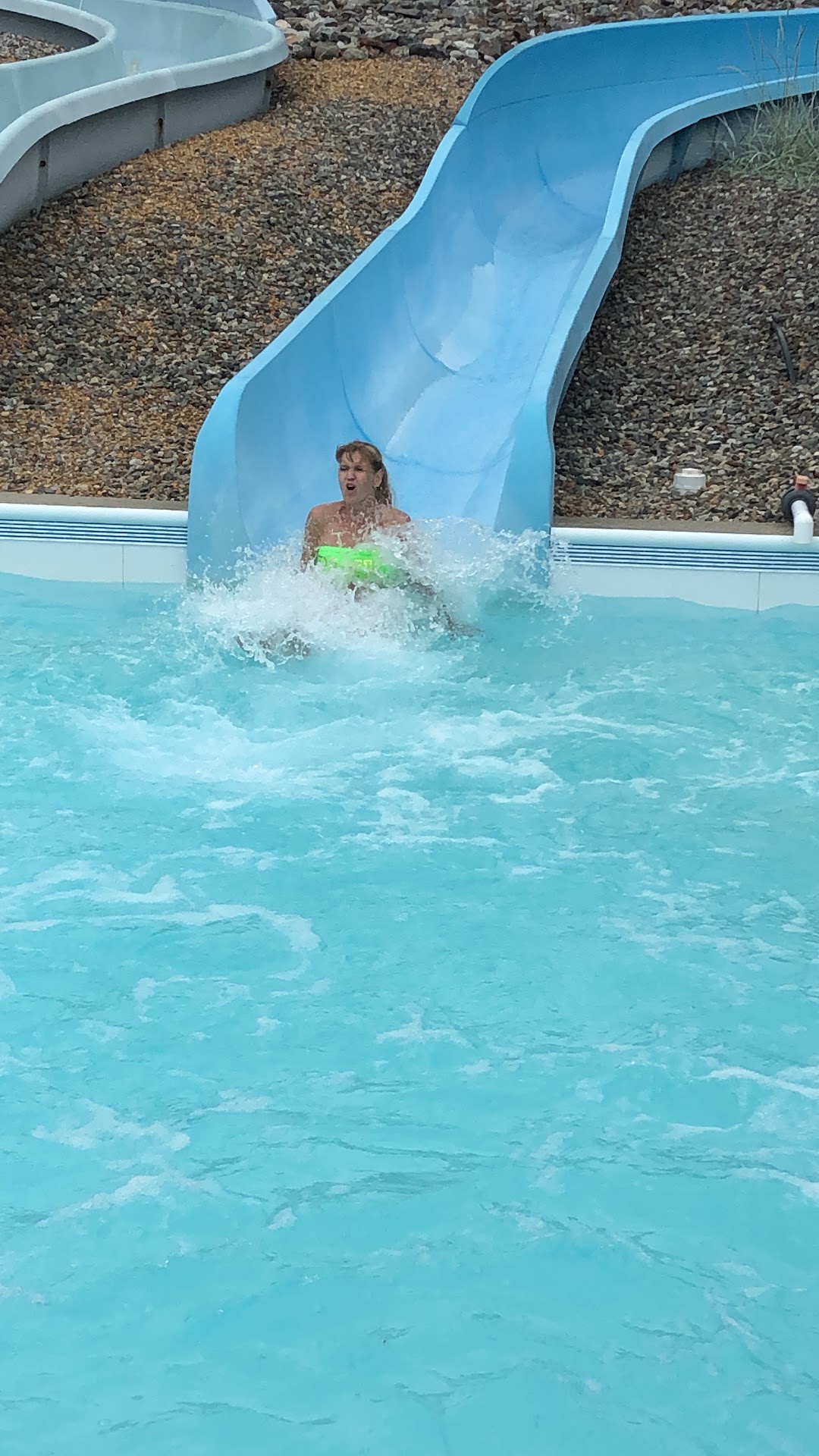 Ā Ā Ā Read moreThe Good: This place is awesome!! Super safe! They made sure everyone was far apart while in line & when setting up your spot on the grass. The bathrooms and separate changing areas smelled like tropical coconuts and bleach cleaner from being wiped down constantly. Staff really was everywhere. At capacity but not crowded, we easily swam without interruption (except for a few lost Marco Polo players) and the line for the slides went quick. The water is warm, the air is breezy so the name totally matches and slide #3 is the best! They all twist you up the sides but #3 was our winner. Bring cash for food, no credit cards, there is an atm ($2 fee). We all had a blast and were asleep 10 minutes out of the parking lot. I was driving so I had to stay awake. š