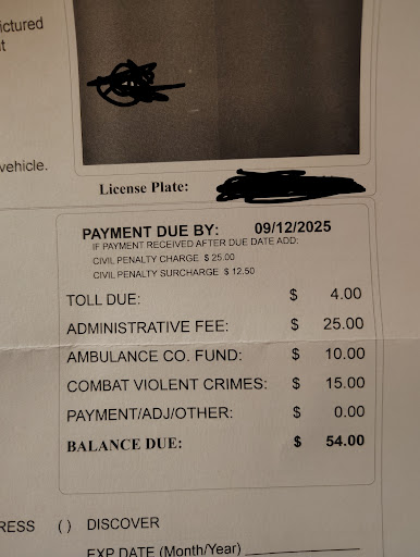Read moreReceived my first notice to pay them a $4 toll. The "violation" was in June. Apparently my ez pass didn't scan. Took them 2 months to notify me and charge me the $4. Except there's FIFTY dollars of bogus fines on there. Called to appeal it, they hung up on me, called back, she said it's a fine for failure to pay. But this was my first notice to pay, I would have happily paid the $4 I owe 2 months ago, but they didn't notify me until now. I never refused to pay. I would have paid them promptly if they just told me and were reasonable, but now this is dragged out more because I have to MAIL an appeal. No phone or web option.