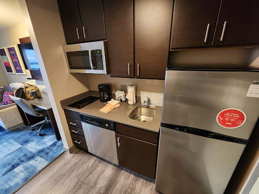 Read moreProbably a 3.5 rating. It's clean & seems pretty new. The room had a kitchen area with a microwave & a stovetop, but no oven. In my room, the refrigerator is decent, but the doors open the wrong way. There are a few cooking utinsels, silverware, glasware. The thing to cook there would be TV dinners & not much more.||||The room is smallish, at least a standard room, but it has enough to get by. There is a table & chairs that can be used for dining. There's also a comfy-looking upholstered chair that has a very big arm on the left side & a normal sized arm on the right side. For someone left handed, their arm is trapped in a sense by the high side of the chair. There's a llamp behind that chair, so it's likely good for reading, save for the weird chair. There is also a reading lamp on each side of each bed, so there's a lot of light. There ought to be a few more plugs including for USB cords, of which there aren't any. The WiFi is fine & the TVi was also fine, with a decent selection of chaaannels. There's also an iron/board available. The beds were comfortable. ||||The batroom has a full tub, which is a fading thing these days. The sink is outside the tub & toilet, so it can be used seperately. The sink could use a towel bar/ring nearby as there is no place there to hang a towel. The drain closer unit for the tub was broken, but managed to hold water. The tub did drain well, which is not always so in hotels. There's an unusual closet there that I can't really describe. There's no dresser for folding clothes/socks except the night stand. The closet has some shelves for that I guess. The closet is unusual as noted, with a lot of wasted space.||||The free breakfast was mediocre, though COVID may still be a factor. The breakfast area is very small for the size of the hotel. I could see it getting over-run if a lot of the guests arrived at once. I've stayed at a lot of different Marriott hotels & this breakfast was among the poorest. They had no butter. It seems that someone could simply go to a COSTCO or Restaurant Depot for that. Also, no english muffins. The only toastable item were individual slices of plain white bread., without butter. There was no make-your-own waffle option either.||||The indoor pool is nice. I don't know if there's a small gym area. Parking seems adequate. I saw an outdoor grill available. Also during our stay, the smoke alarm went off each moring & the fire department had to be summoned to turn it off. There was no fire. This isn't necessarily the fault of the hotel, but one of the times we were still asleep. Maybe a guest was cooking to make up for the...