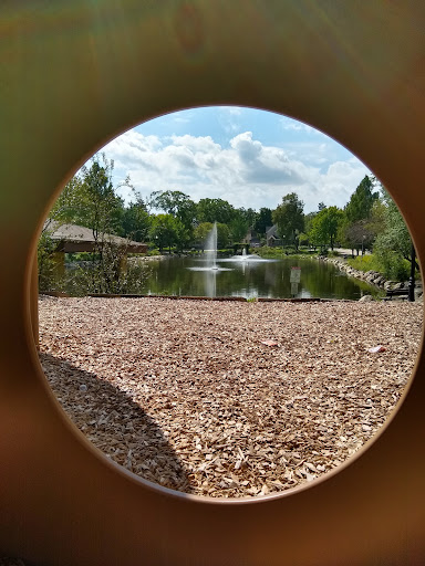 This park is on the north end of a large pond with two fountains in the middle. There is a pages all around the pond, as well as around the park itself. It was easy to let my older son play at the park while I pushed my younger son around in the stroller.