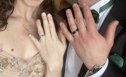 Read moreCarroll’s is where my now-husband found my engagement ring back in 2021 and they have been amazing with customer service, timing, and pricing for the past two years. We went back to them for our wedding bands. My wedding band was easy to find, it was the complimentary band made by Gabriel & Co. for my engagement ring. But, for my husband, he saw a few examples in the case but also saw some options online that Kate brought up on their tablet. Not knowing for certain which band he was leaning towards, Kate and the team were able to bring in a few additional options so he could see them in-person before making the final choice. For the day of the wedding, we saw a Gabriel & Co. delicate necklace in their catalog, so Kate was also able to bring in the exact necklace we were eying and I tried it on a few weeks later. My experience with Kate and Gabriel & Co. has been very easy for new pieces and we had quite a few blue Carroll’s Jewelers boxes at the wedding! Thank you Kate and the rest...