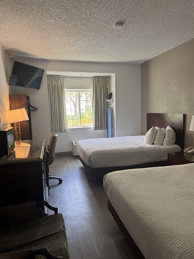 The long version: Let me start out with the room. Firstly, I walk in and the air quality has significantly decreased. A sudden smell of old furniture, wood, and stuffiness struck my nostrils. The room I booked was a double suite with 2 queen beds. The first queen bed, which was closest to the door, had a giant mysterious substance stain on the bed skirt, yikes. The nightstand next to the bed in question reeked of vinegar and overall was a very unpleasant smell, nothing was placed in that nightstand. The second bed was.. habitable but, there was a giant dent near the A/C that sunk the bed in? No clue. The closet was alright, 3 hangers. There was a single chair/couch placed next to the dresser, upon further inspection I discovered a mustard packet and other mysterious substances uncleaned under the cushion. Every single time we went to plug in one of our devices into the outlets, they fell out. There’s no reasons the outlets should be as loose as they were. The lights were yellow and weren’t very bright as well.
