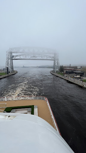 The Duluth Bridge is operated 24 hours a day, with skilled people at the helm. The bridge is raised and lowered for iron ore and cement ships, sailboats, and excursion tour boats. In the busy seasons of spring and summer, the bridge averages 26 lifts a day. Decades ago, pedestrians were able to ride on the bridge when it was raised. But, this was outlawed in the early 1980s after a horrible accident that claimed the life of a woman when she was crushed by the steel bridge.