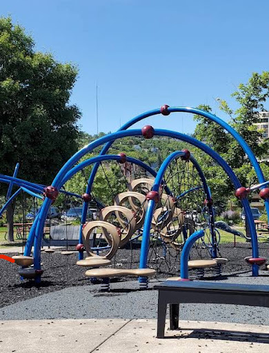 The climbing rings are a big hit with my kids, and there’s a separate area shaped like a boat for little ones to climb, drive, and slide around. There are shaded areas for snacking and benches throughout for parents to sit and relax. Overall, a well-designed park and a fun place to spend time...