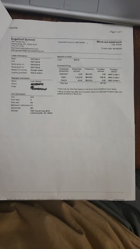 Overall, my time at Sugarloaf Summit was nothing short of a nightmare. The unorganized staff, coupled with their inability to address serious concerns, made for an extremely unpleasant living experience. I cannot recommend this apartment complex to anyone seeking a peaceful and well-managed place to call home. I wish I was able to compensated from the emotional distress caused by Sugarloaf Summit, however, this review speaks a lot for myself and other...