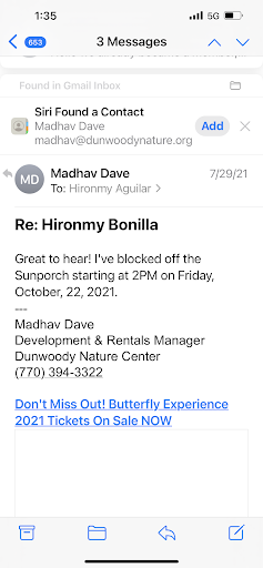We had our wedding here at the end of September and it could not have been more perfect! We used Austin Lane for the ceremony which provided an intimate, secluded venue and the tree cover provided enough shade to keep it a comfortable temperature. This was followed by a cocktail hour in the lower meadow/sun porch and a reception in the North Woods Pavilion, both of which easily accommodated our 100+ guests. There is plenty of "behind the scenes" space for pre-event staging that we were able to use as well.The outdoor setting is so idyllic and pristine that we were able to use very simple decorations and let the nature be the focus. Our guests were raving about how beautiful it was. The elegant, glass-encased pavilion allowed us to have an indoor reception while still enjoying the wooded scenery. For the price, I don't think there is a better wedding venue in metro Atlanta. Abigail, the events manager, is extremely helpful and easy to work with. She kept us well informed throughout the whole process and everything ran smoothly. If you want a gorgeous, outdoor wedding on a DIY budget, while supporting a great local non-profit, this venue...