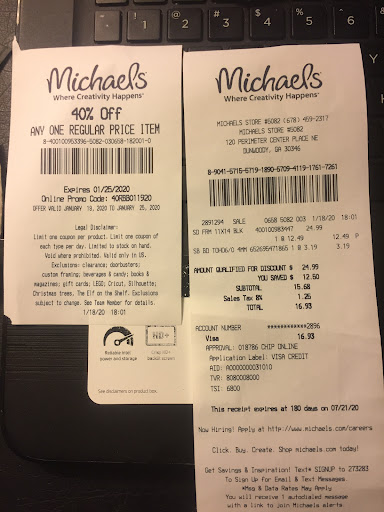 Read moreCustomer service: one star -I checked on their website that the product I want is in stock at Perimeter place store, but I couldn't find it. I asked a lady near the frame area about it and she said "we don't sell it here". I asked if she can look it up since the website says the store has it. She said "I have all the information YOU have access to." I thanked the lady and went to look for another employee because every store has an internal inventory system and consumers obviously don't have access to it. I asked another lady at the register and she told me there should be 3 in stock after checking the item # in her scanner. And of course, we can't find it. I thanked the second lady and left. Product selections: two stars -Compared to hobby lobby, their selections are outdated and slim, nothing that make me want to have/buy Neatness: one star -clearance aisle is very very messy Price: one star, if the store is messy and outdated, i expect the price to be low, but for the price, go...