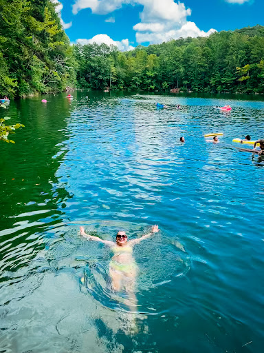 People will often go get tubes or inflatable blow up pool toys to take with them to the swimming hole. There is a shady side of this pond and a few places where folks will jump in. Please note this is an old quarry with rocks and debris below the surface of the water.