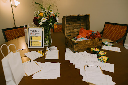 One of the highlights for the kids was an art scavenger hunt we put together. DAC kindly allowed the kids to explore the art in the Truist Gallery, even though that wasn’t part of the space we had rented—such a generous touch!