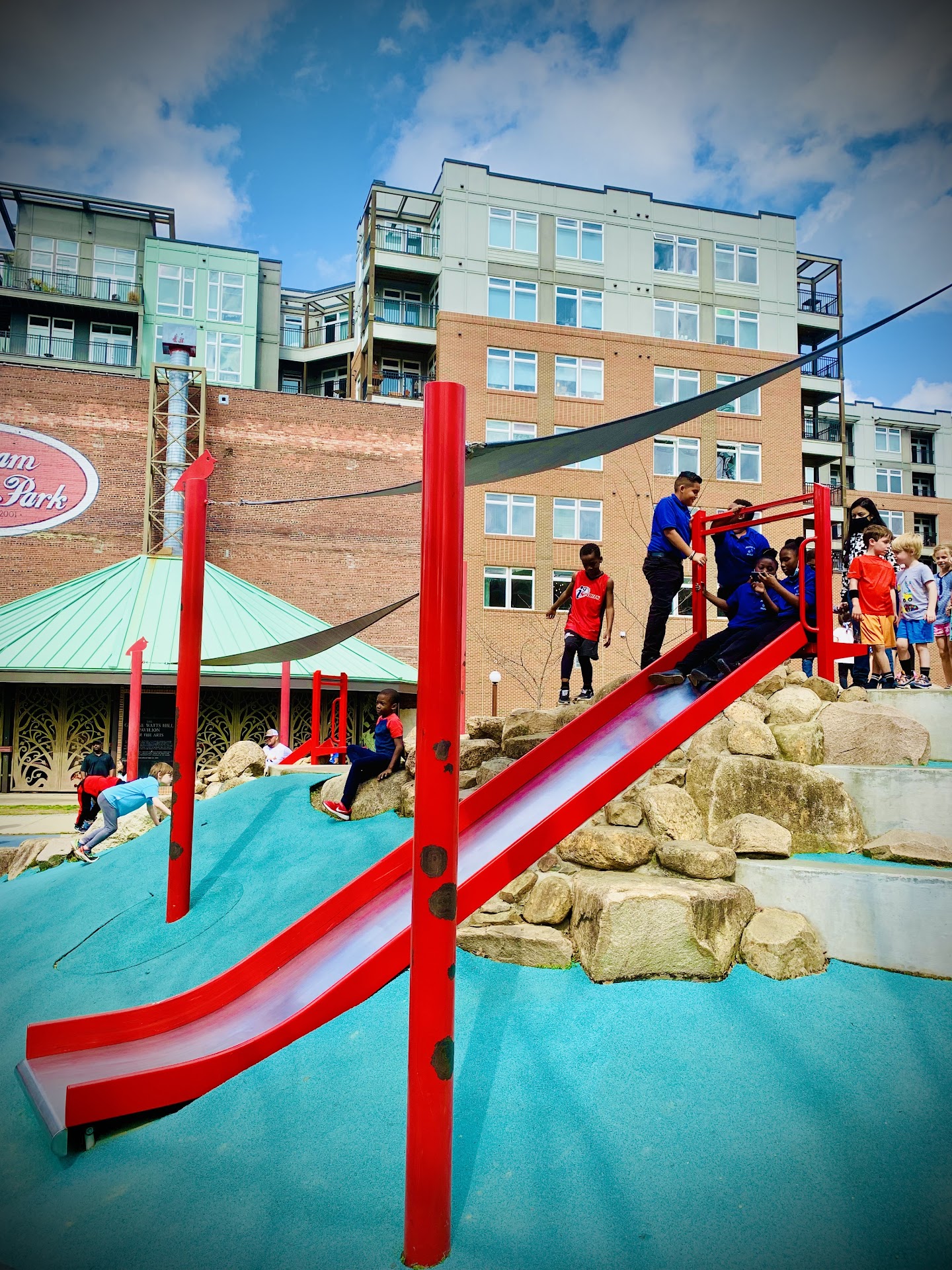 Read moreThe park itself is not very large. I'd say it's between a quarter to half a square mile in total area. Also, there doesn't seem to be a water fountain, at least not a visible one. Restrooms are available, however. There is a nice play area for kids as well as a small skate park. If you're an adult, the best time to come would be Saturday mornings/afternoons, where half of the park turns into a market place, with many vendors selling produce and merchandise from booths or food trucks. The location of the park may be it's best feature, as it is within walking distance of many other nice spots in...