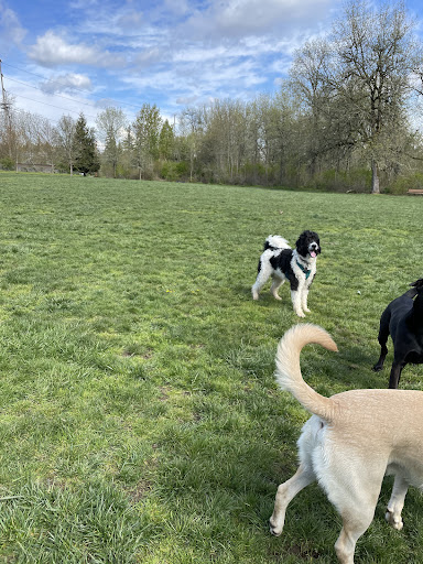 We love this park for the doggos, huge beautiful space for them to run free. Dog parks without fences are always a positive in my experience because the dogs who don't need a fence to run tend to be more well behaved and not a risk to others. The park is also located far from any busy roads so no need to worry about that. There are also lots of beautiful walking trails to explore when you are all done.
