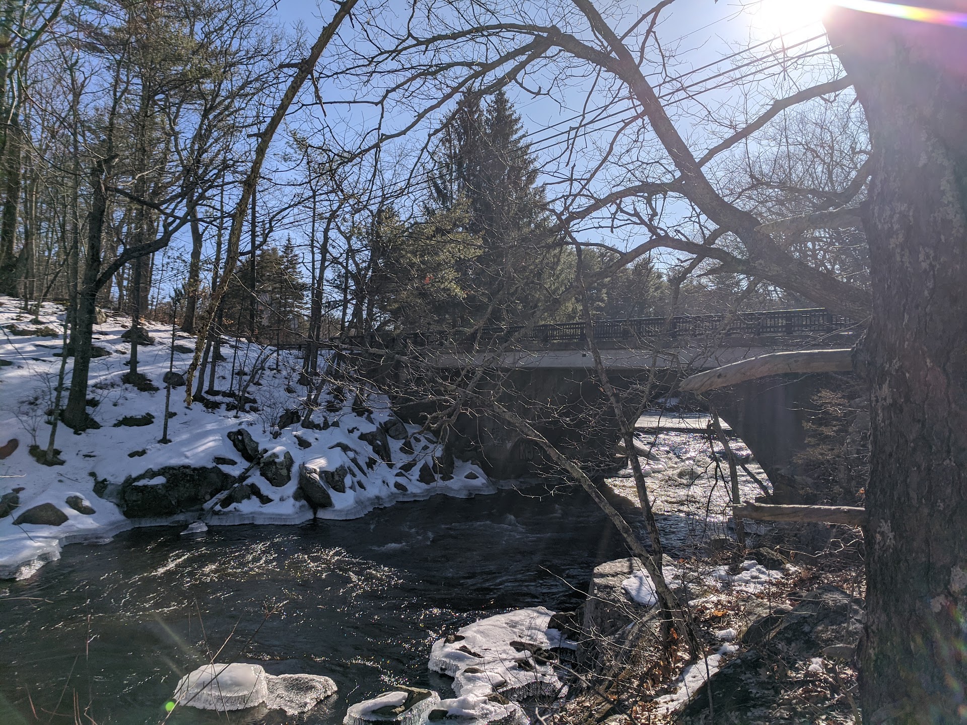 I used to visit at least once a week in the summers of my younger days to go swimming and mountain 🏔️ biking. I later brought my kids a few times to swim. I had a friend who lived on Bennett RD. and I would park and ride my bike to the falls. There isn't a real waterfall. It is part of the Lamprey River and it is a popular swimming 🥽 and 🎣 fishing area. Popular with families. The chance of encountering a Lamprey eel is slim. They are further upstream and hang out in the shallows. Better fishing 🎣 further down river. I have encountered 🐢 turtles, though not the snapping kind. They do live and nest along the river. I've even seen beavers, but, at night. I visited today and there was a young guy sitting in a yoga position meditating in the freezing 🥶 cold. Parking is limited. The early summer is the best time to visit when the water levels are at...