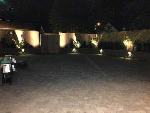 Next to that is a courtyard with strung up accent lights and some tables & chairs.