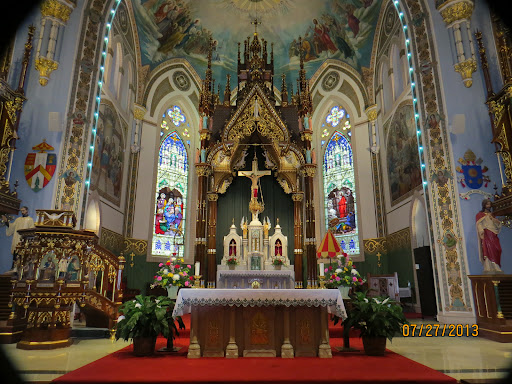 Read moreChurch dedicated December 3, 1889. Constructed under the direction of Heer and Son, well known architects from Dubuque. Named a Basilica in 1956, now one of 82 basilicas in the United States. Spires are 212 feet high. Over the altar and crucifix is a 52’ high baldachin of carved butternut. All the decorative painting in the church was done 1904-1905 by Alphonse and Lottie Brielmaier, a brother and sister team of artists from Milwaukee (born...