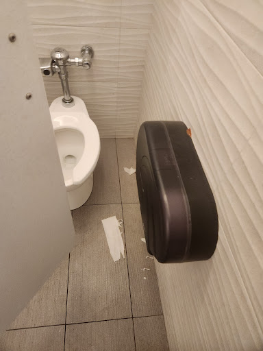 2.) The inside and outside was filthy. When we were entering the theater trash was blowing past the front door. When we entered, the lobby floor was covered in popcorn--some crushed, some full pieces. Entering our movie was no different, there was crushed popcorn all the way down the hall and up the stairs. I stepped out to use the restroom and saw someone vacuuming so I was optimistic that the lobby would be clean when I got out of our movie. Unfortunately, upon exiting the movie we saw the lobby was still covered in popcorn. At this point it wasn't even a surprise that the trash was still right outside the front door too.
