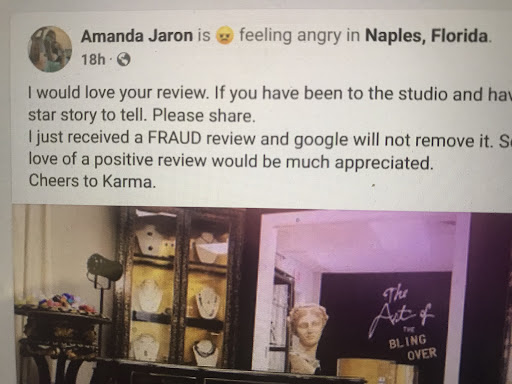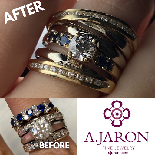 From start to finish, my dream of "dumping" the bad joujou that was attached to a bunch of old rings and chains and pendants I had acquired over the many years, from ex-husbands and boyfriends, became a wonderful masterpiece of artistic design. We met on her backyard steps out in the fresh air, during early Covid days, where I brought my little ziplock baggie filled with the remnants of my past, that I had stopped wearing years ago, because the pieces no longer held any sentimental meaning, to talk about what she refers to as a "Blingover". Amanda, artist that she is, separated all the stones from the gold they had lived in, many for decades, and did her magic.The process was easy. I just sat back and watched her create. With all my stones and gold in front of her, she went to her "drawing board" and sketched several designs, which she posted on Facebook, for all of her fans and devotees to vote on, for fun. In the end, I had about 5 designs to select from. She let her imagination go wild and creative and bubbly like pink champagne, because after all, that's who she is----and she turned my pile of bad joujou into a gorgeous breathtaking ring, that draws admiring compliments everywhere the light catches my hand, just so...Now you might think I had to mortgage my house to pay for this...but no. I had enough gold (that she took in trade to melt down for my ring and maybe others too) and I brought all the precious stones...so I was pretty much just paying for her time and talented artistry. Her price was very fair and reasonable. And most importantly, now my ring will forever be a treasure that sees the light of day, often---one that I don't have to hide in a box in the back of my drawer because and old flame gave it to me and I just can't wear it anymore. And for me, that's priceless. Plus, I have bragging rights and can now boast that I own an Amanda Jaron "original" design---an artistic...